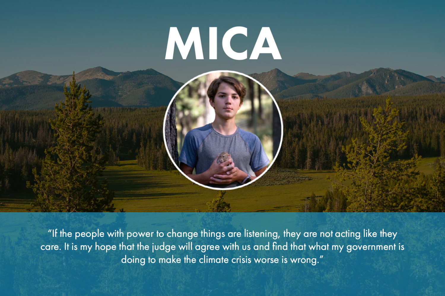 Mica was 11 years old when he joined the lawsuit, explaining “I became a plaintiff because I could see how the negative impacts of climate change were harming me and my daily life, and I was learning that the dangers of climate change would keep getting worse as I grow older.”